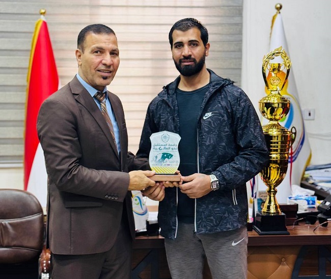 عميد كلية التربية البدنية وعلوم الرياضة يكرم منتخب الجامعة لكرة الطائرة لحصوله على المركز الأول في بطولة "جامعة المستقبل"